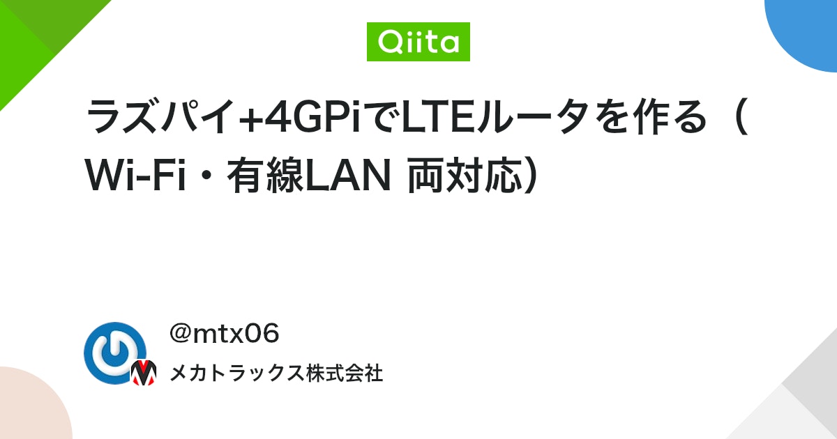 Raspberry Pi と 4GPi を使用して、LTEルータを作成する手順を紹介します。 LTEルータには無線/有線デバイスの両方から接続が可能です。